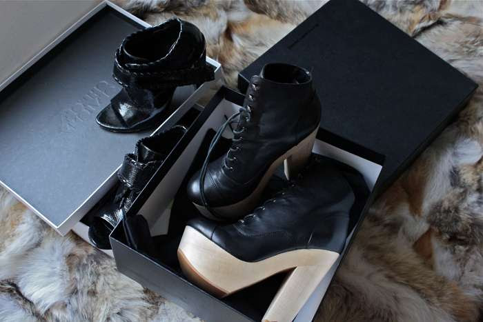 I scored a beautiful waistcoatshirtthing by alexander wang and a simple white acne knit that I could not resist... Wang patent booties and those lovely chloe sevigny for opening ceremony lace-ups. All almost already worn in, and on it’s way in the next post..